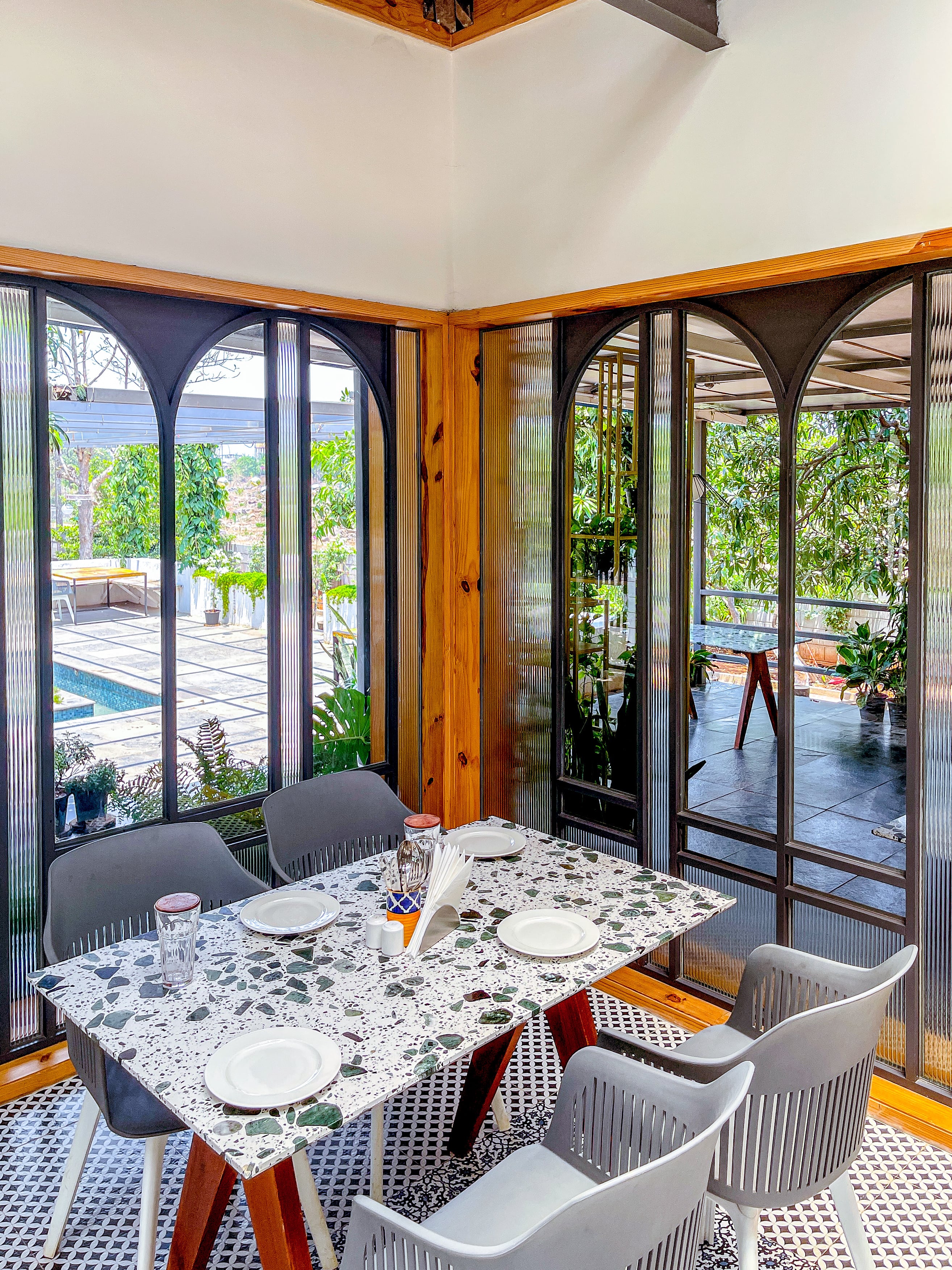 Repurposed from a watchhouse of a 12-acre ancestral farm swarmed with Mango & Chickoo Trees, Tranquil Artisan kitchen is a Cosy, Modern Rustic restaurant serving comfort food along with authentic Maharashtrian & global delicacies.